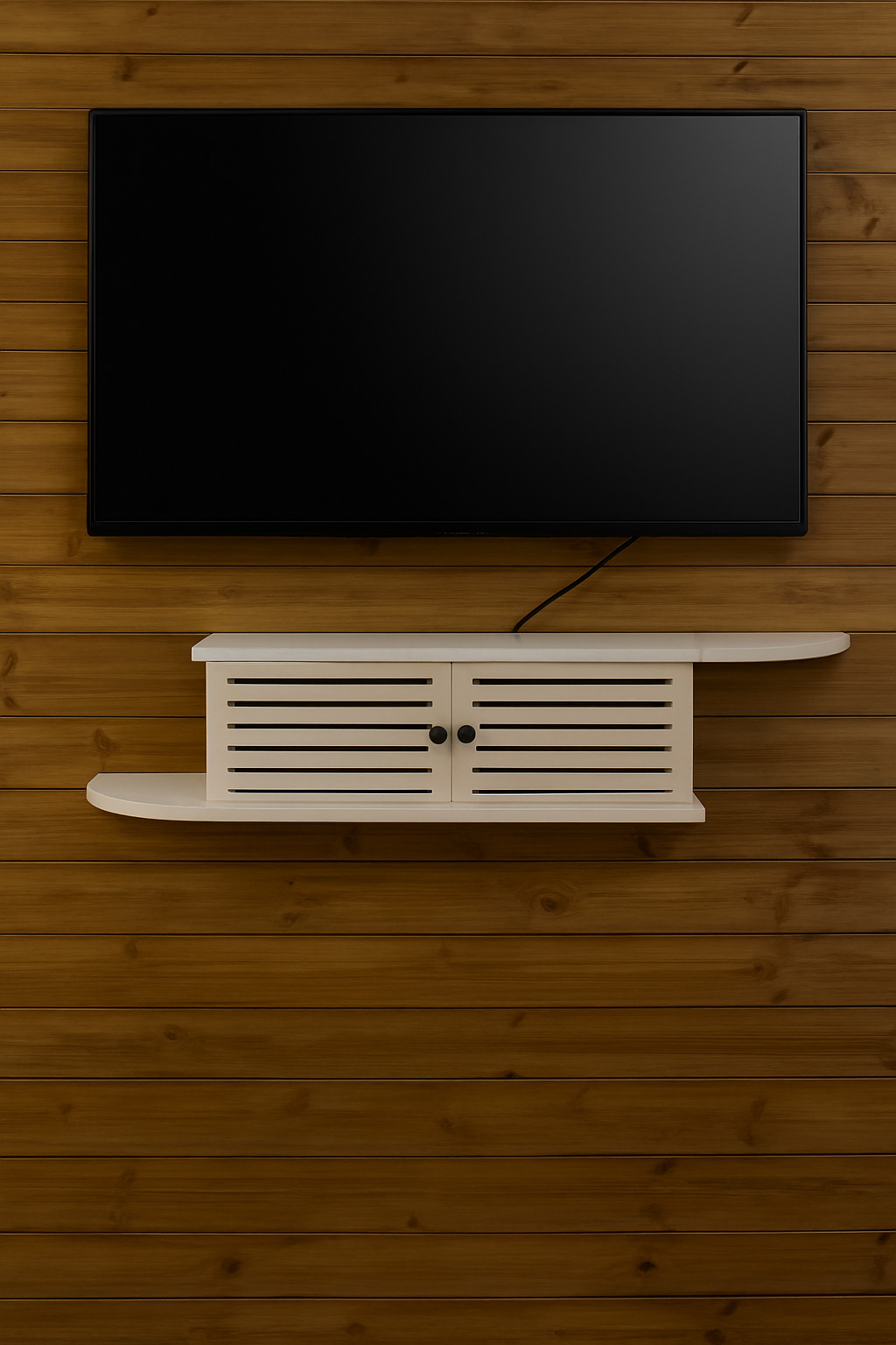 شلف مخصوص زیر تلویزیون برای گیرنده دیجیتال ،ریسیور،وای فای و طول شلف80 عمق 25...سایز مفید باکس درب دار طول38 ارتفاع13 و عمق 25 سانت.به همراه