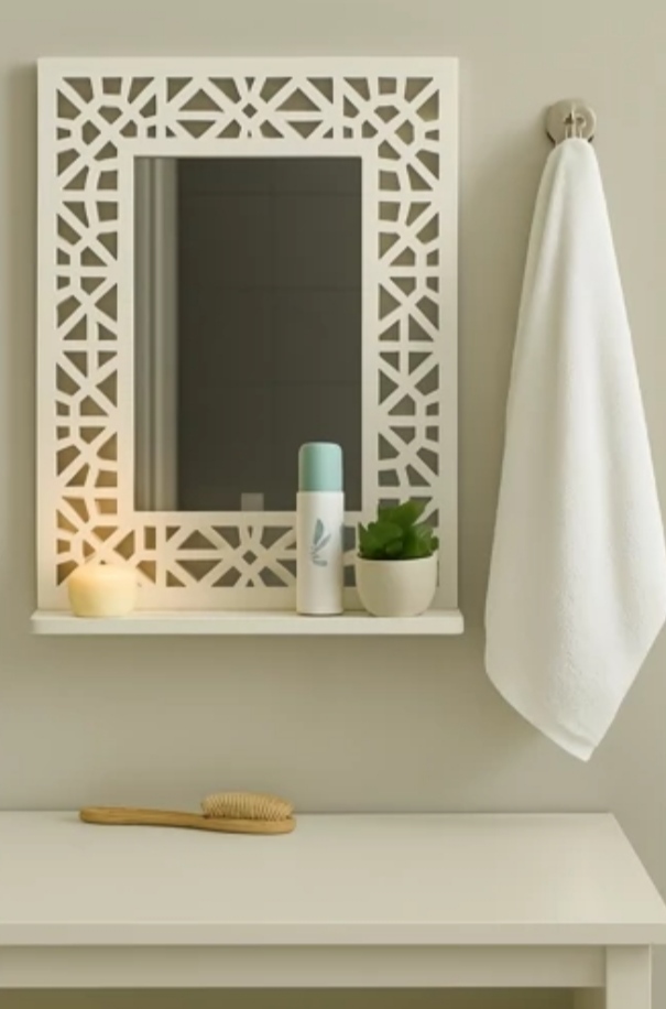 ابعاد پیشخوان زیر آینه 30 سانت در عمق 9 سانت پیشخوان زیر جهت قرار دادن وسایل آرایشی و بهداشتی برس ادکلن و...